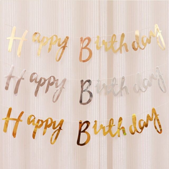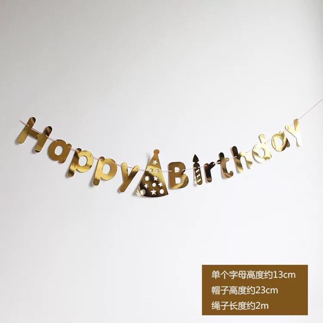 Nhà cửa & Đời sống > Trang trí nhà cửa > Khác || Dây chữ Happy birthday mảnh ánh kim vàng, bạcCòn hàng
