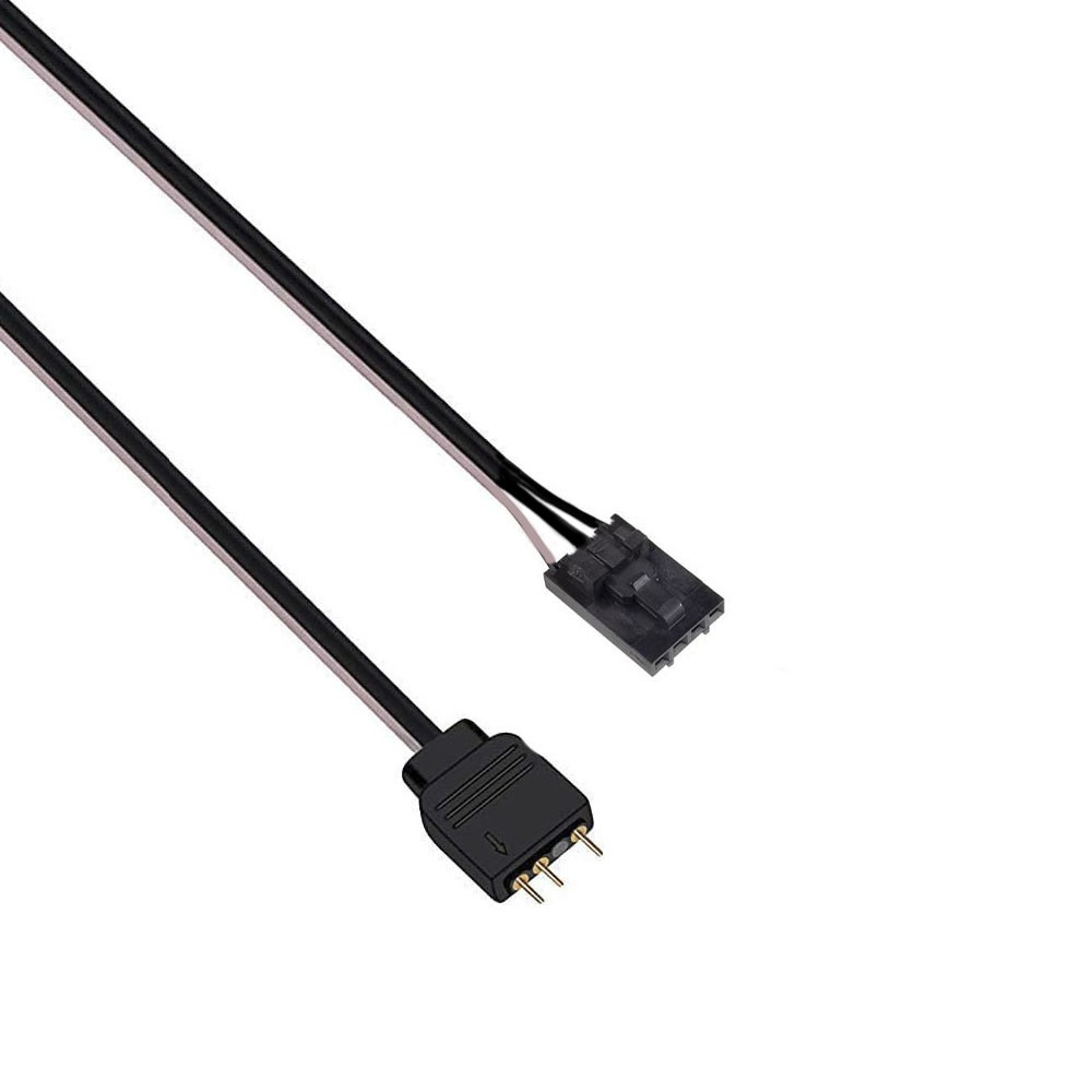 - Cắm Jack 3 pin (4 pin khuyết 1) với các thiết bị như dây LED hoặc Quạt LED (Lưu ý mũi tên trên các đầu cắm phải được kết nối đúng với nhau)