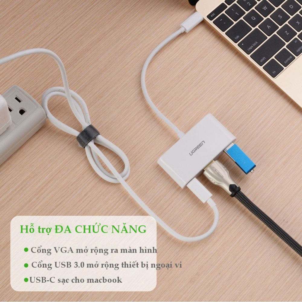 Máy tính & Laptop > Thiết Bị Lưu Trữ > USB & OTG || [Mã ELMALL150 giảm 8% đơn 500K] Dây chuyển đổi USB Type-C sang USB 3.0 + HDMI + USB Type-C UGREEN 30377 (màu trắng)Còn hàng
