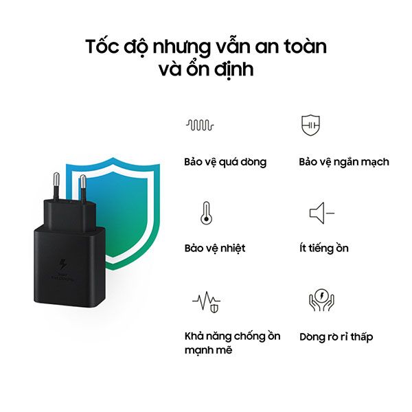Bộ dây & củ sạc nhanh Samsung 45W Type-C cho Galaxy Note10 Plus, S20 Ultra và các dòng điện thoại khác – Hàng Chính hãng