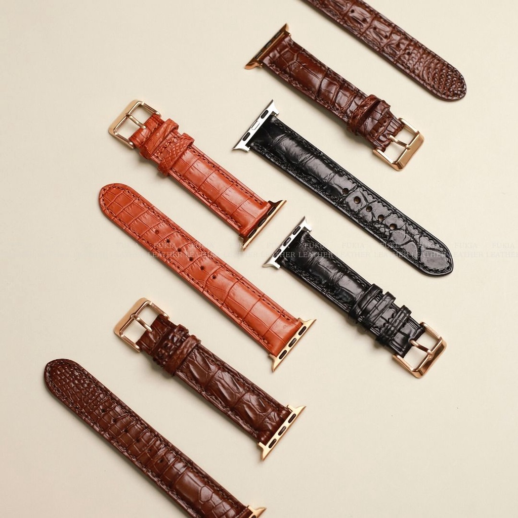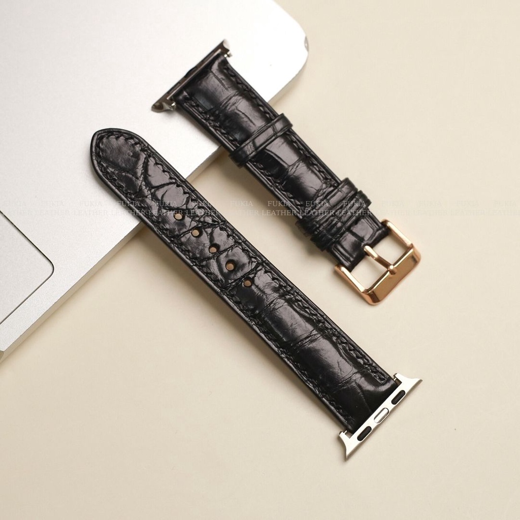 Thông tin sản phẩm: Dây da cá sấu thủ công khâu máy đen dành cho Apple Watch, Samsung watch, Oppo watch, đồng hồ cơThương hiệu:
