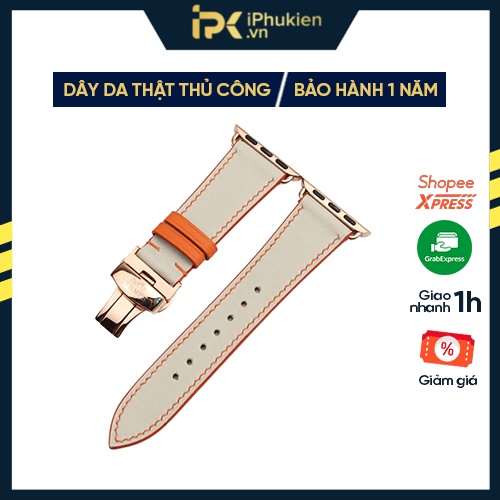 Giới thiệu Dây Da Handmade [DA THẬT, BẢO HÀNH 1 NĂM] Swift Xám Chỉ Cam cho Apple Watch Seris 1/2/3/4/5/6/7