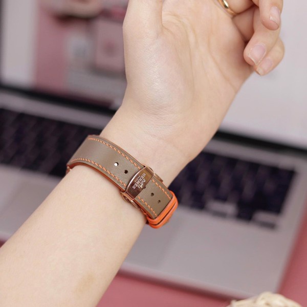DÂY DA BÊ SWIFT NHẬP KHẨU PHÁP🔸 Chất liệu mặt ngoài: Da Swift nhập khẩu từ Pháp(Da swift có bề mặt mịn, trơn, không có đường vân như da Epsom và không có hạt như da Togo), Do dây da thật swift Nâu Tây Chỉ Cam cho Apple Watch nhẵn, mịn nên hạn chế được tình trạng bám bẩn so với các loại dây da có đường vân. Bề mặt dây swift cũng không có lớp phủ ngoài nên rất thoáng khí, khả năng đàn hồi tốt, khó bị gãy, nứt.