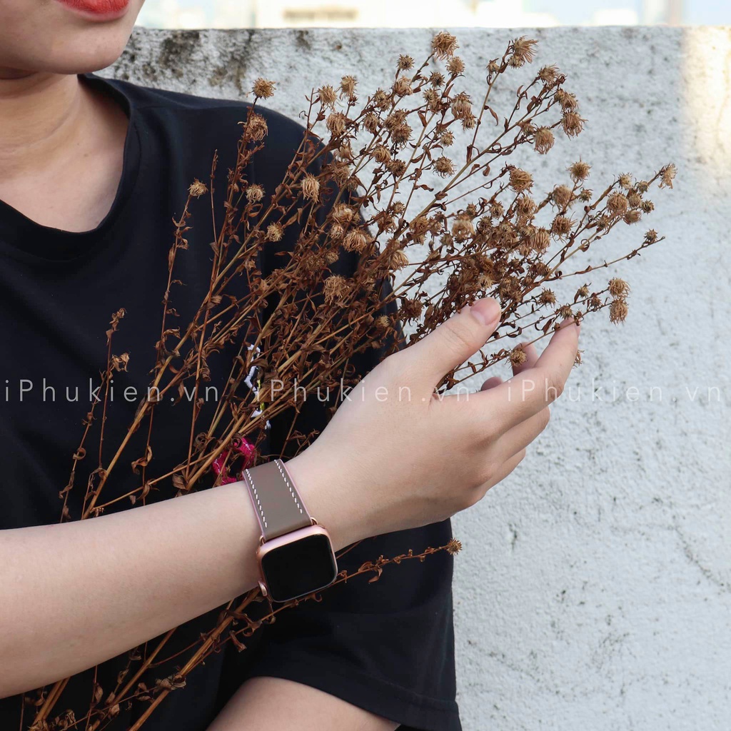 Giới thiệu Dây Da Handmade [DA THẬT, BẢO HÀNH 1 NĂM] Swift Nâu Tây Chỉ Hồng cho AW Series 1/2/3/4/5/6/7