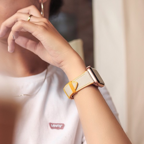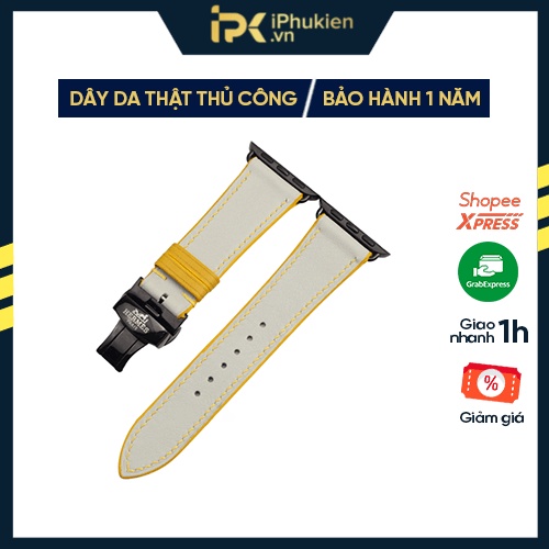 Giới thiệu Dây Da Handmade [DA THẬT, BẢO HÀNH 1 NĂM] Swift Xám Chỉ Vàng cho Apple Watch Seris 1/2/3/4/5/6/7