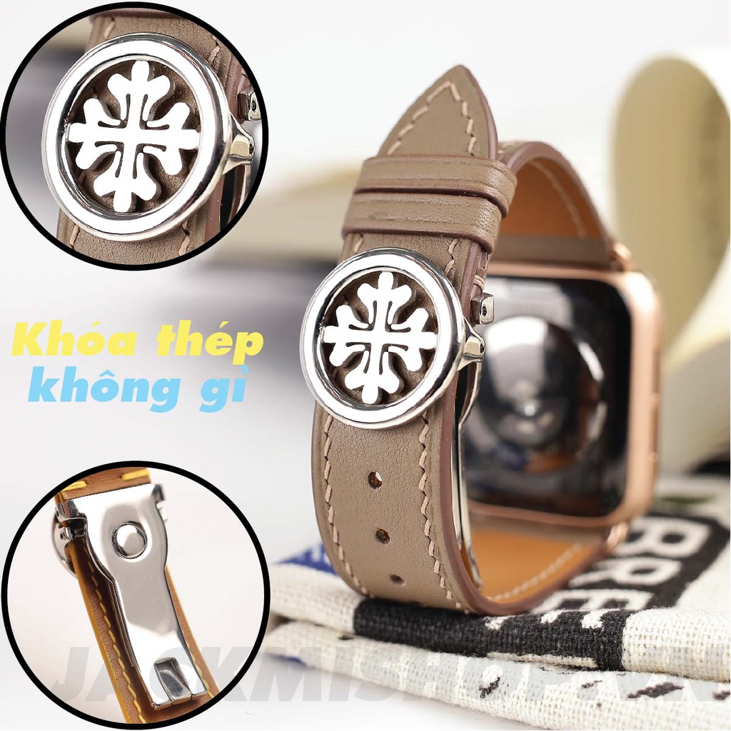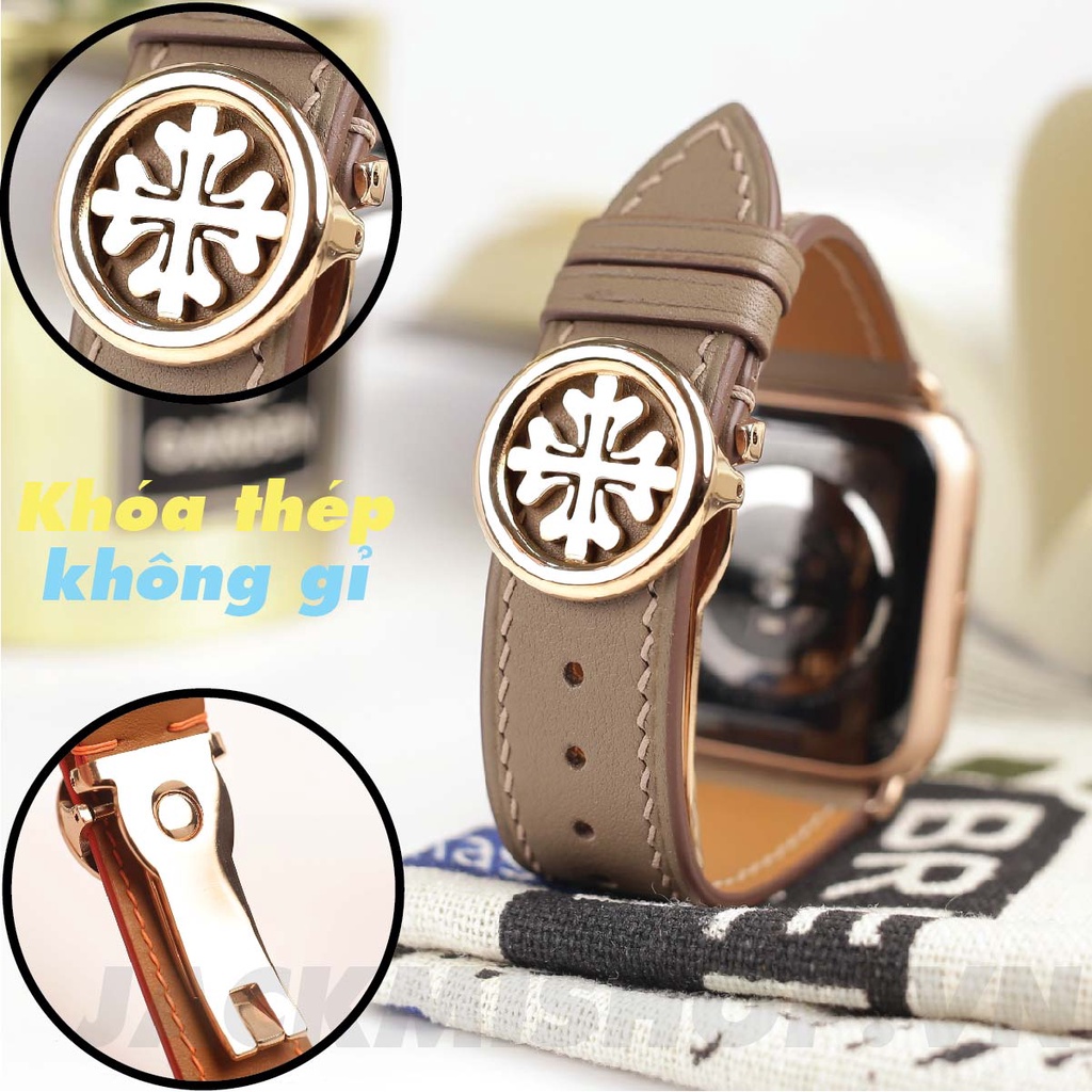 Giới thiệu [DÂY DA THẬT] DÂY DA BÊ SWIFT MAY TAY THỦ CÔNG MÀU NÂU TÂY KHÓA PATEK CHO APPLE WATCH SERIES 1=>6 (BẢO HÀNH 1 NĂM)