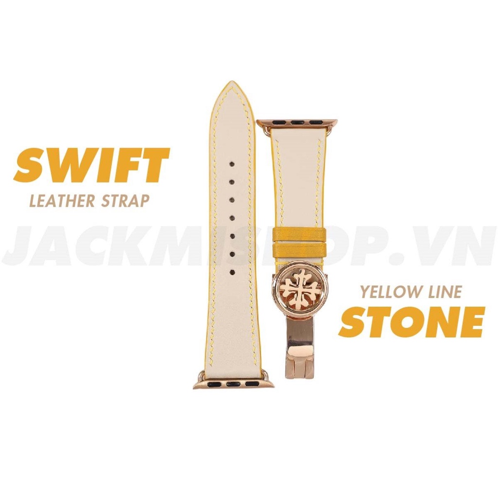 [DÂY DA THẬT] DÂY DA BÊ SWIFT MAY TAY THỦ CÔNG MÀU KEM CHỈ VÀNG KHÓA PATEK CHO APPLE WATCH SERIES 1=>6 (BẢO HÀNH 1 NĂM)