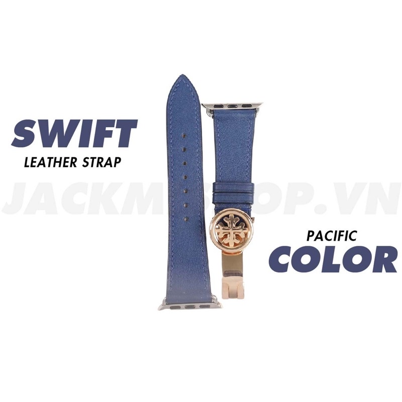 [DÂY DA THẬT] DÂY DA BÊ SWIFT MAY TAY THỦ CÔNG MÀU XANH PACIFIC KHÓA PATEK CHO APPLE WATCH SERIES 1=>6 (BẢO HÀNH 1 NĂM)