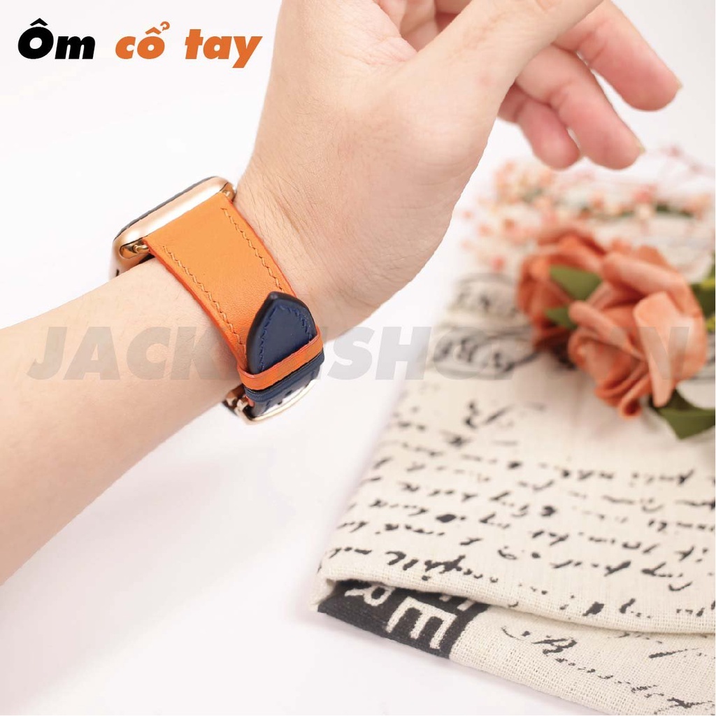 Giới thiệu [DÂY DA THẬT] DÂY DA BÊ SWIFT MAY TAY THỦ CÔNG MÀU CAM/NAVY KHÓA PATEK CHO APPLE WATCH SERIES 1=>6 (BẢO HÀNH 1 NĂM)