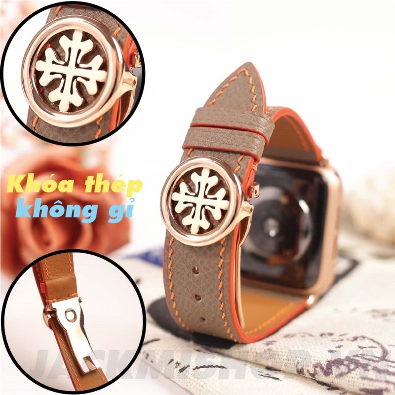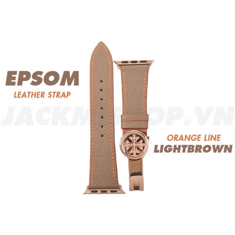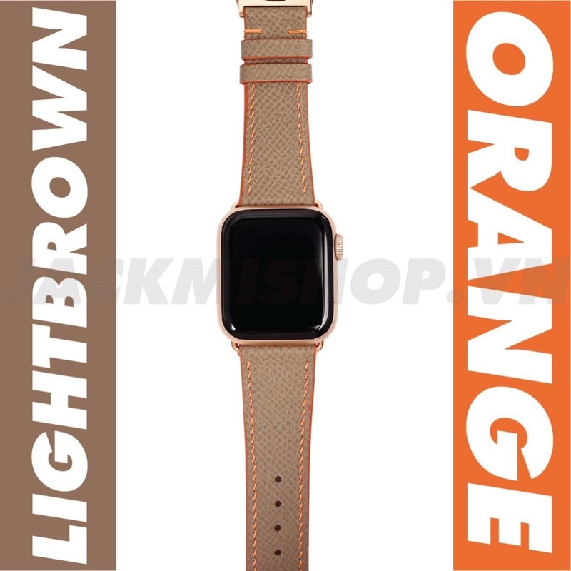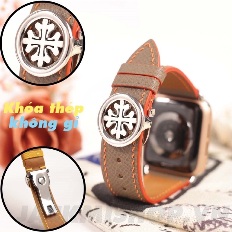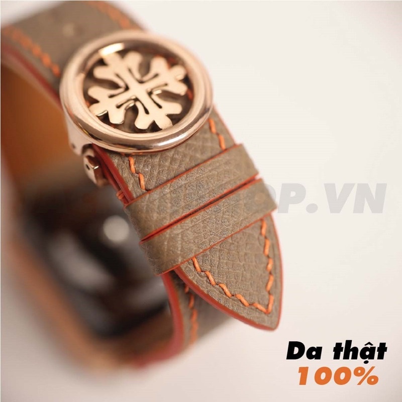 Giới thiệu [DÂY DA THẬT] DÂY DA EPSOM MAY TAY THỦ CÔNG MÀU NÂU TÂY CHỈ CAM KHÓA PATEK CHO APPLE WATCH SERIES 1=>6 (BẢO HÀNH 1 NĂM)