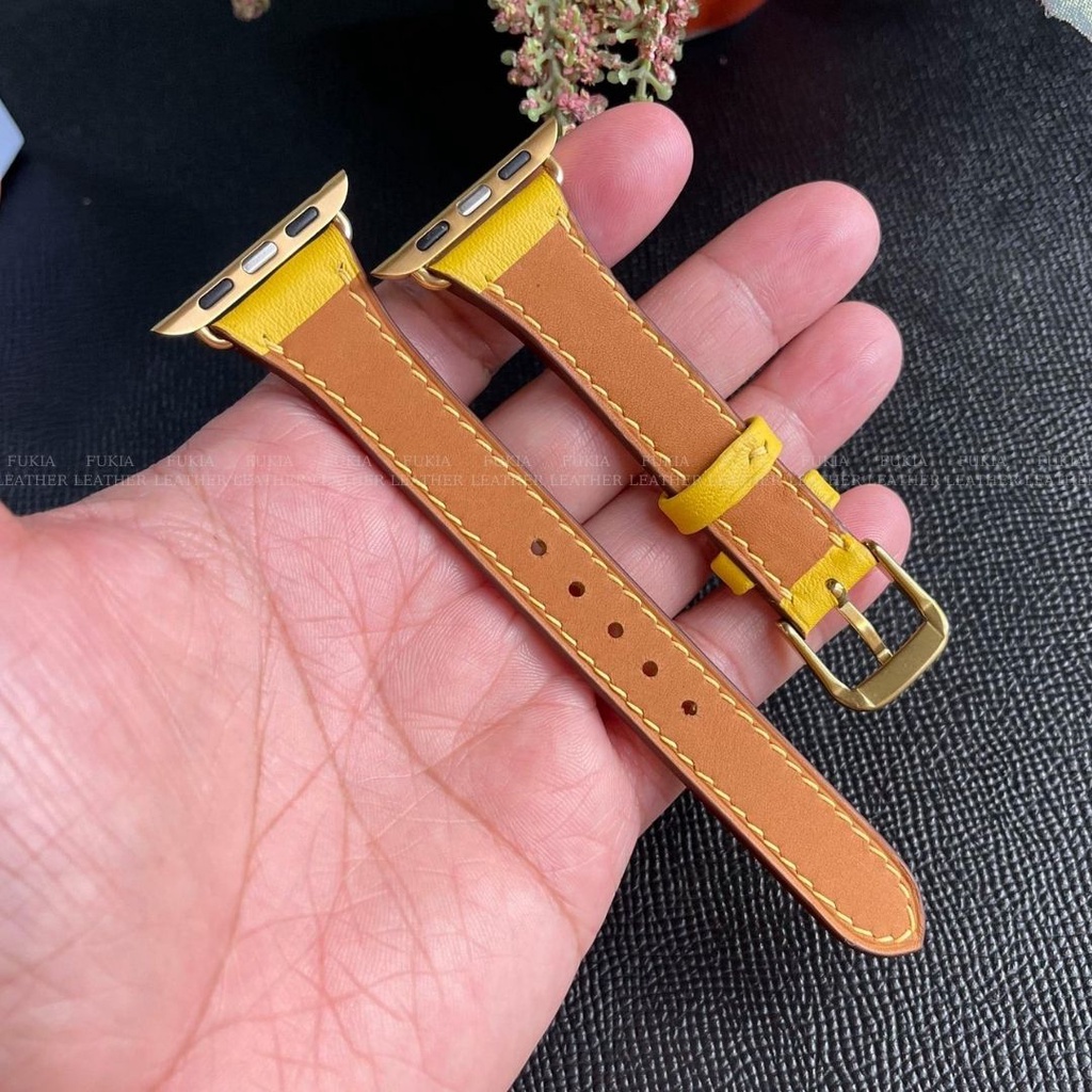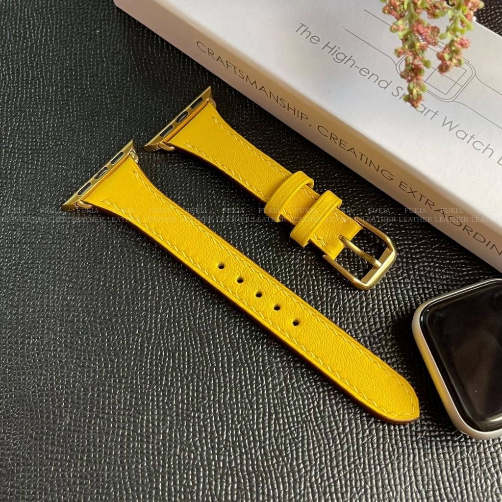 Dây da thủ công bản nhỏ Swift Vàng dành cho Apple Watch, đồng hồ thông minh, đồng hồ cơ