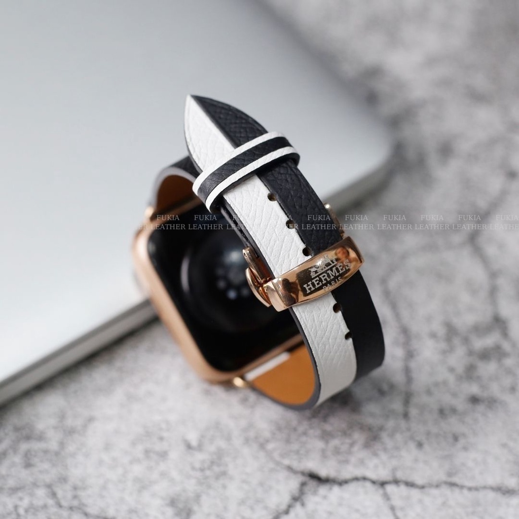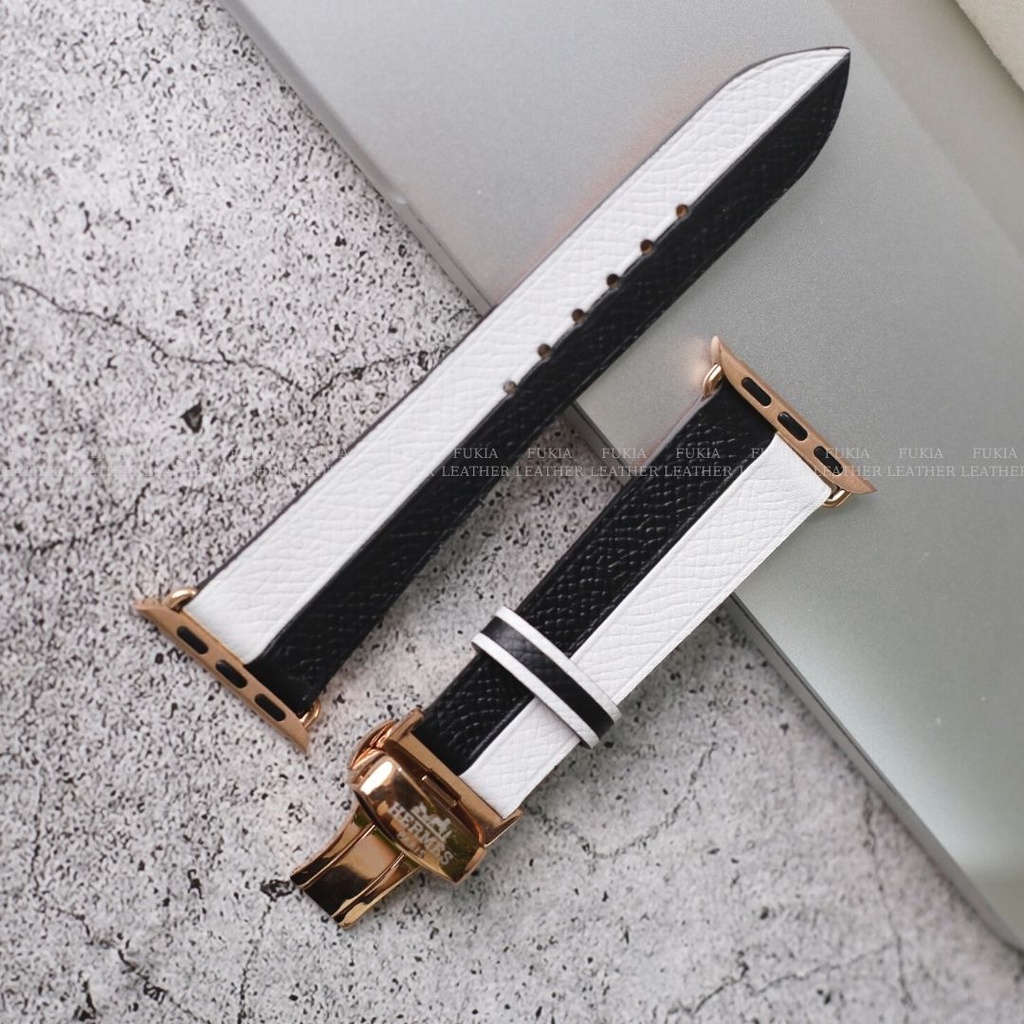 Dây da thủ công Epsom Đen Mix Trắng dành cho Apple Watch, đồng hồ thông minh, đồng hồ cơ