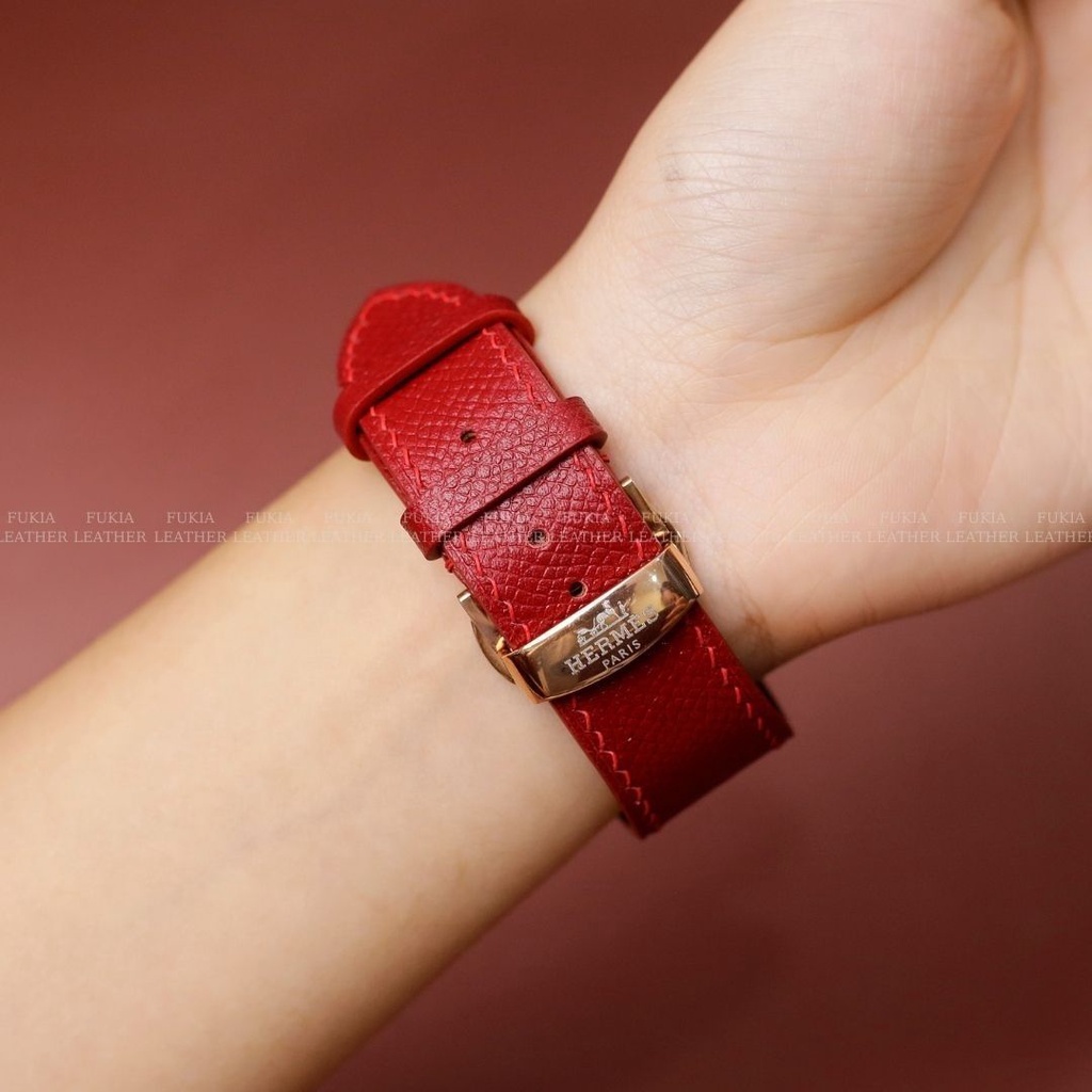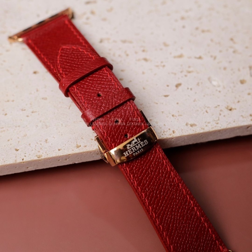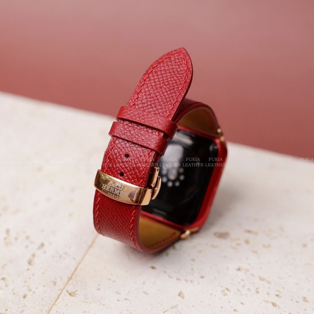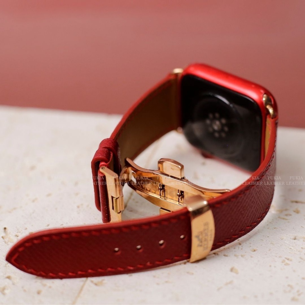 Dây da thủ công Epsom Đỏ dành cho Apple Watch, đồng hồ thông minh, đồng hồ cơ MIZADO