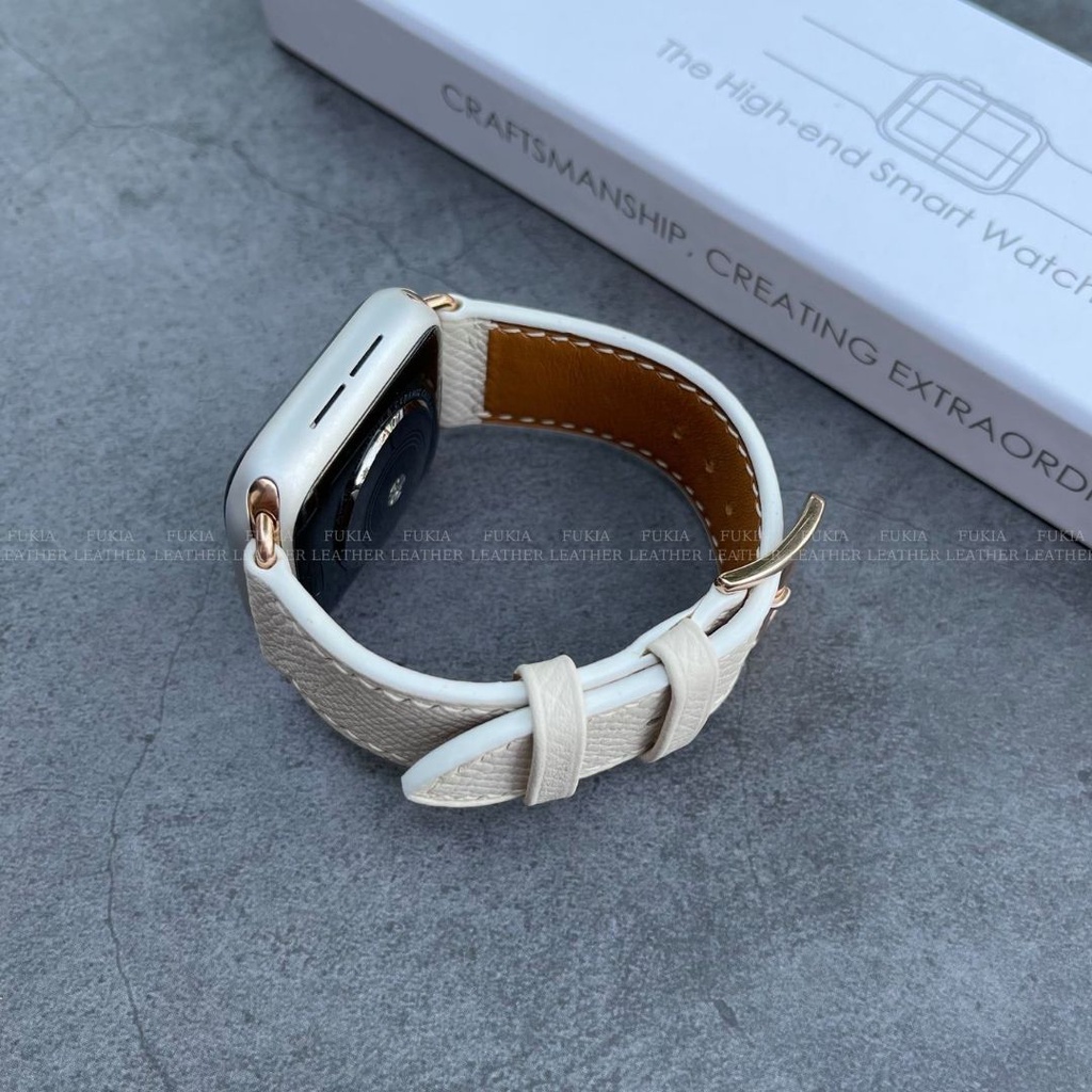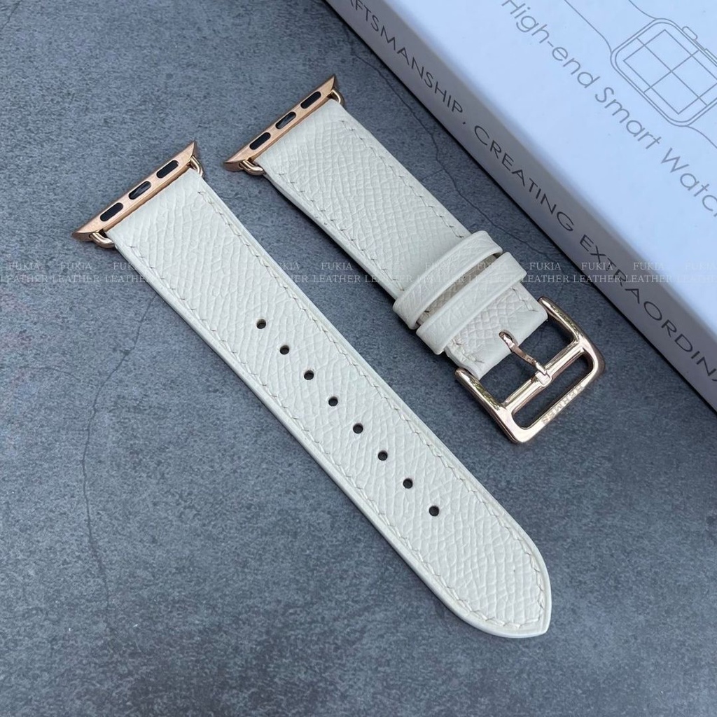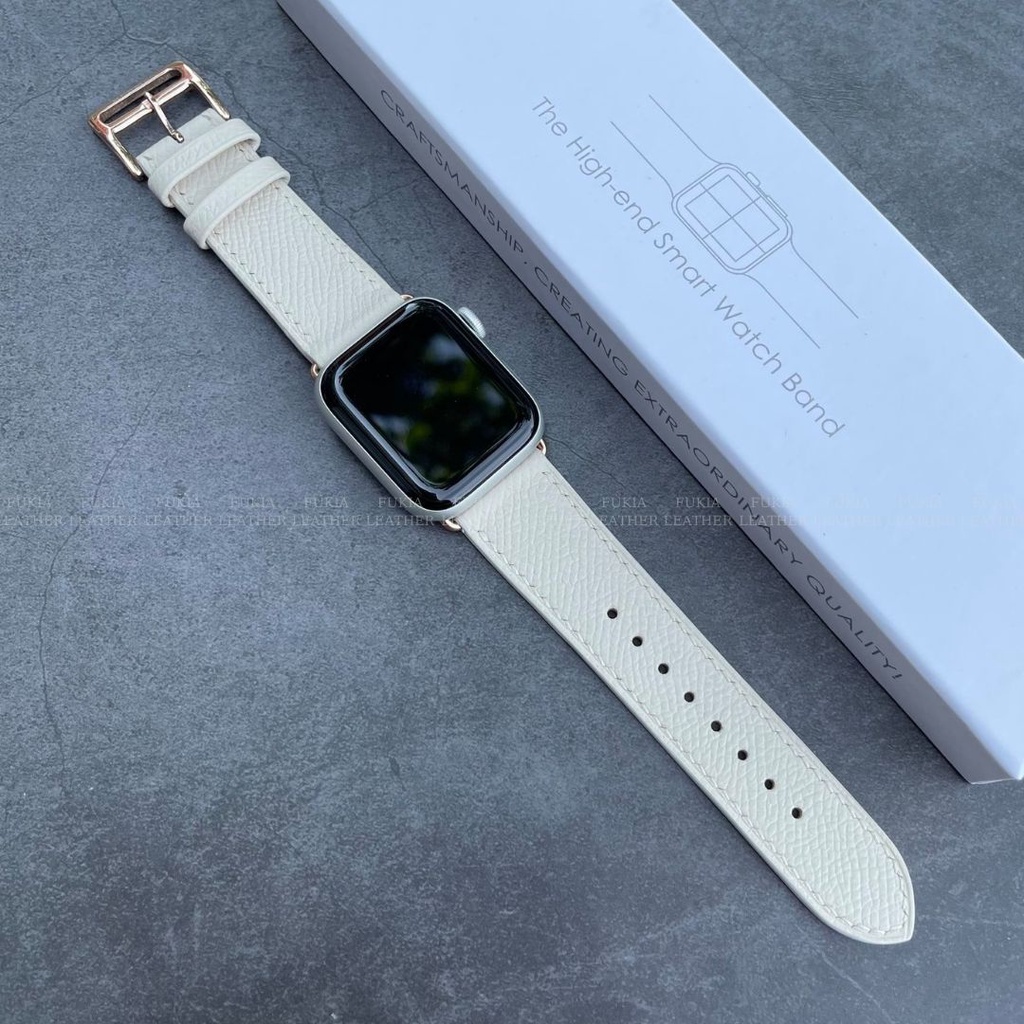 Dây da thủ công Epsom Trắng dành cho Apple Watch, đồng hồ thông minh, đồng hồ cơ