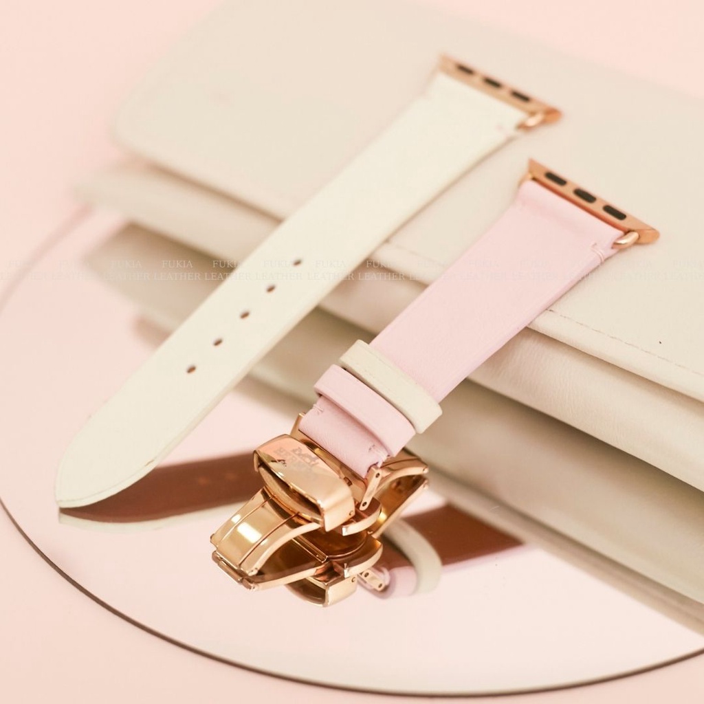 Dây da thủ công Swift Trắng Mix Hồng dành cho Apple Watch, đồng hồ thông minh, đồng hồ cơ