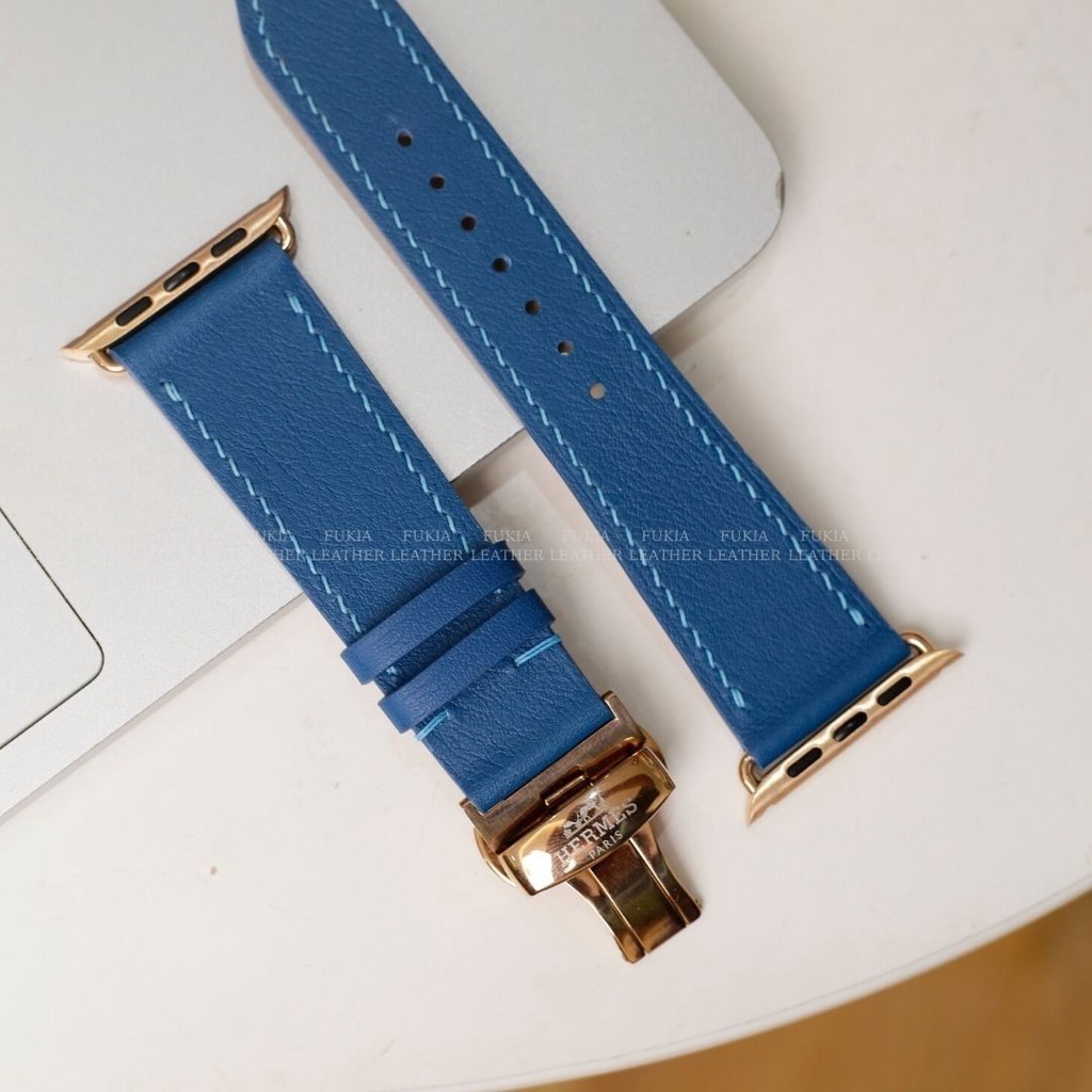 Dây da thủ công Swift Xanh Dương dành cho Apple Watch, đồng hồ thông minh, đồng hồ cơ