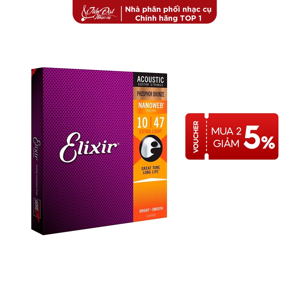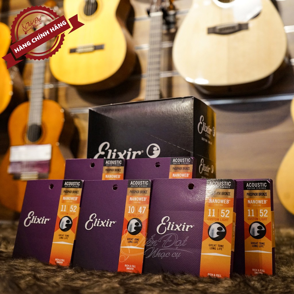 - Là dòng sản phẩm dây Phosphor-Bronze phủ Nanoweb của hãng Elixir (Mỹ), sản phẩm thiết kế dùng cho đàn guitar dây thép, kích cỡ 12-53, loại Light