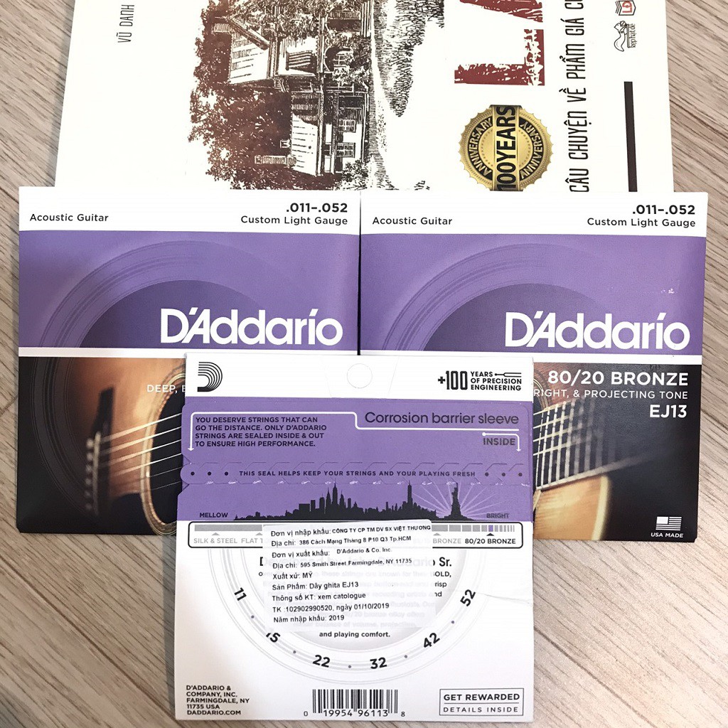 Sở thích & Sưu tầm > Nhạc Cụ & Phụ Kiện > Phụ Kiện Âm Nhạc || Dây Đàn Guitar Acoustic D'Addario EJ13, Custom Light, 11-52, 80/20 Bronze ( Hàng Chính Hãng )Còn hàng