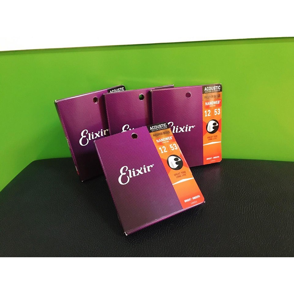 Dây đàn guitar acoustic Elixir 16027 Phosphor Bronze Nanoweb Chính Hãng Mã 16052 cỡ 12 và Elixir 16002 cỡ 10 Enzi