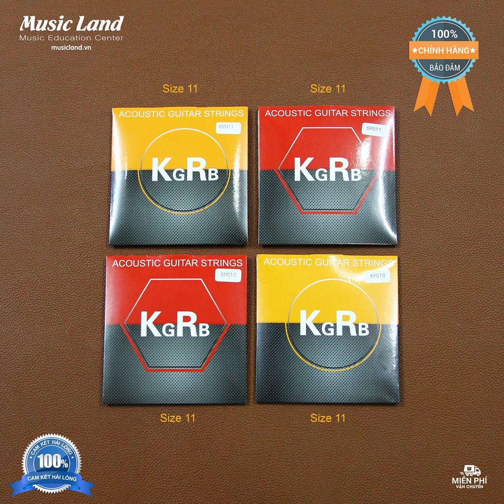 - Dây đàn Guitar Acoustic KgRb là dòng sản phẩm dây phosphor pha đồng (Phosphor-Bronze) của hãng KgRb , kích cỡ 11 và dây size 10 (độ căng của các dây không giống nhau, hai dây cao - dây treble - có độ căng thấp hơn hai dây giữa với mục đích vừa tạo được chất âm sâu cho tiếng đàn vừa giúp người chơi dễ dàng bend nốt)