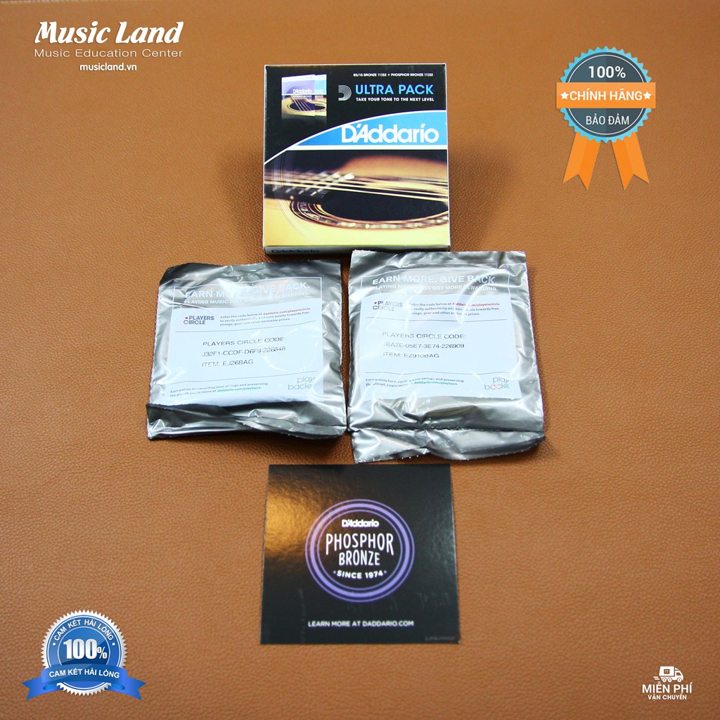 - Combo (2 bộ) dây đàn Ultra Pack EZ910-EJ26 Acoustic chính hãng D’Addario EZ910 + EJ26 nhập khẩu mẫu mới nhất năm 2020.- Dây Phosphor được bọc một cách cẩn thận, tỉ mỉ, chính xác giúp loại bỏ sự ăn mòn ( Rỉ dây ). Mang tuổi thọ cao và âm thanh ồn định lâu dài.
