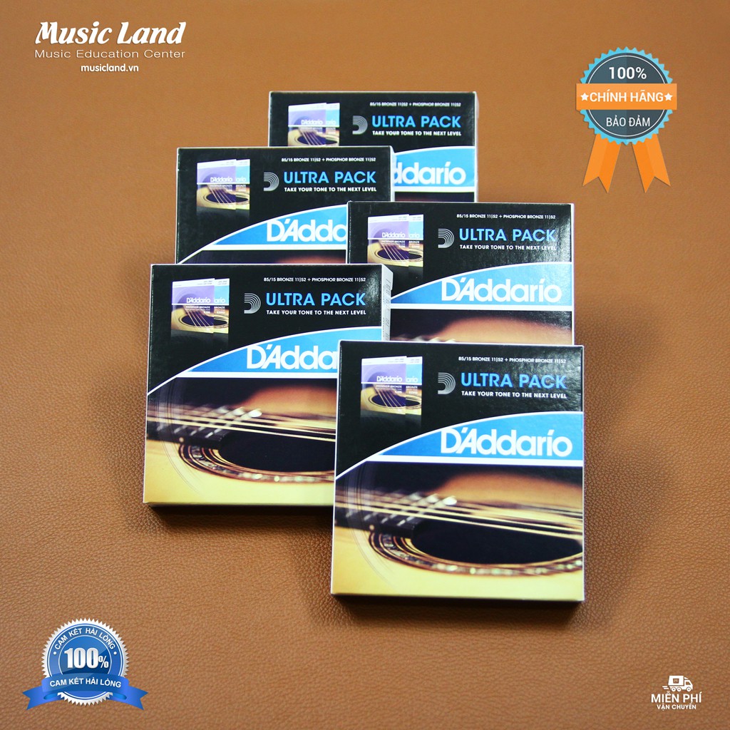 - Ultra Pack D’Addario EZ910 – EJ26 là dòng sản phẩm dây phosphor pha đồng (Phosphor-Bronze) của hãng D'Addario (Mỹ), kích cỡ 11-52, loại Customer Light (độ căng của các dây không giống nhau, hai dây cao - dây treble - có độ căng thấp hơn hai dây giữa với mục đích vừa tạo được chất âm sâu cho tiếng đàn vừa giúp người chơi dễ dàng bend nốt).