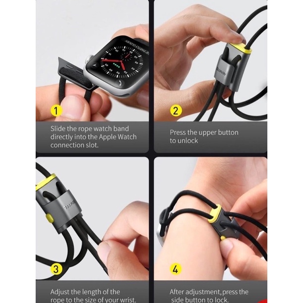 Giới thiệu hệ thống dây đeo thể thao sử dụng cho Apple Watch Series 4-5 Baseus Let "s Go Lockable Rope Strap- Apple watch is the device support are well when you luyệt file and play the thao. Tuy nhiên Khi luyện tập thể thao bạn có thể tiết ra nhiều nhiệt và mồ hôi. Cảm giác nóng và ẩm ướt ở cổ tay khi đeo Apple watch gây không trở ngại và cảm giác khó chịu cho bạn và dây đeo có thể thao tác với Baseus Let " 's Go Lockable Rope Strap dùng cho Apple Watch series 4-5 là một phụ kiện hoàn thiện cho trường hợp này.