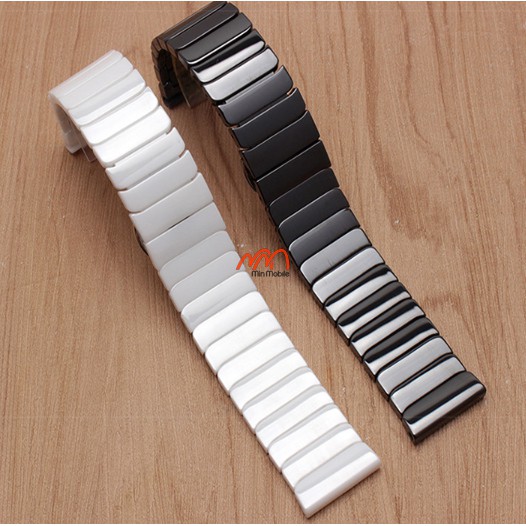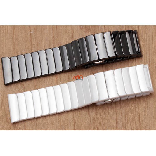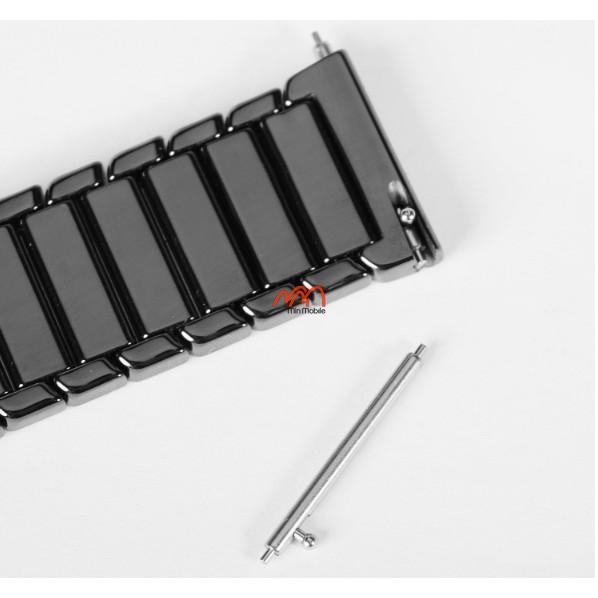 Dây gốm cao cấp có thiết kế dạng mắt xích giống dây kim loại, các mắt xích được kết nối với nhau bởi khóa chốt thông minh vô cùng chắc chắn. Tuy vậy, việc điều chỉnh độ dài, tháo lắp các mắt xích vô cùng dễ dàng chỉ với cây lấy sim thông thường.