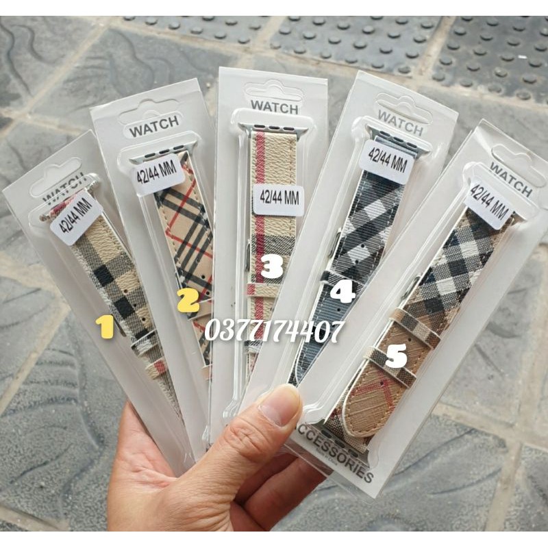 Dây đeo da cho Apple Watch size 38mm, 40mm, 42mm, 44mm hoạt tiết Burberry đẹp sang trọng