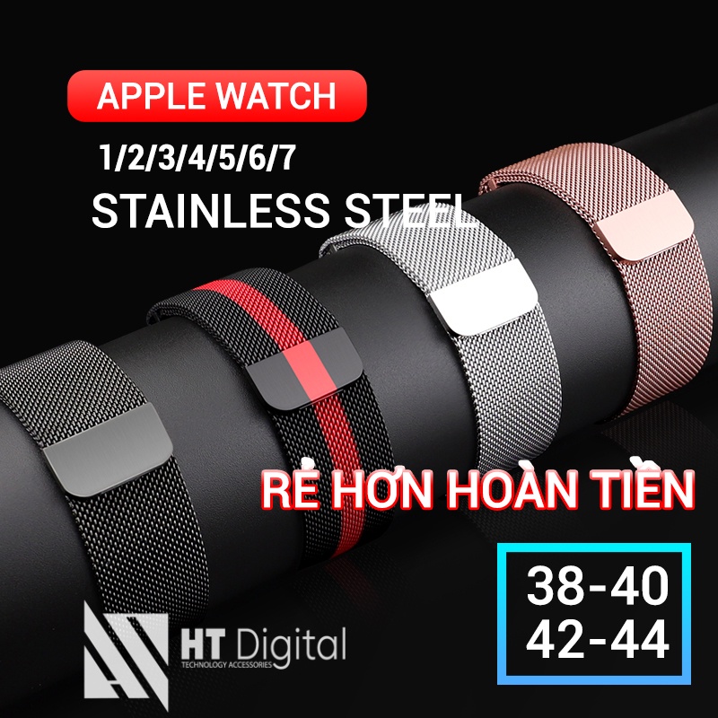 Dây đeo đồng hồ Milanese loop Apple Watch nam châm thép không gỉ đủ size 38-40 42-44