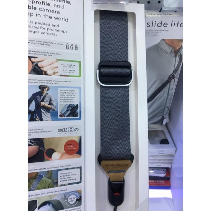Dây đeo Peakdesign Slide Lite là mẫu dây đeo cỡ trung bình đến từ nhà sản xuất Peakdesign danh tiếng của Mỹ. Được là từ chất liệu vô cùng bền và thiết kế thông minh đã giúp chiếc dây đeo này vô cùng nổi tiếng trên khắp thế giới.Chất liệu dây cực bền