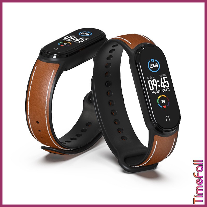 + Dây đeo miband 5, miband 6 silicon mặt da bò kiểu mới MIJOBS