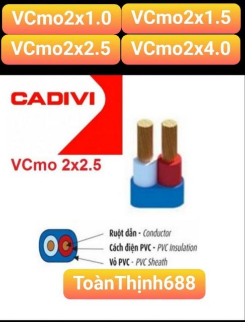 Dây điện đôi dẹp Cadivi 2 lớp vỏ bọc PVC. 100% lỏi đồng Nguyên Chất.¤ Thông số kỹ thuật :