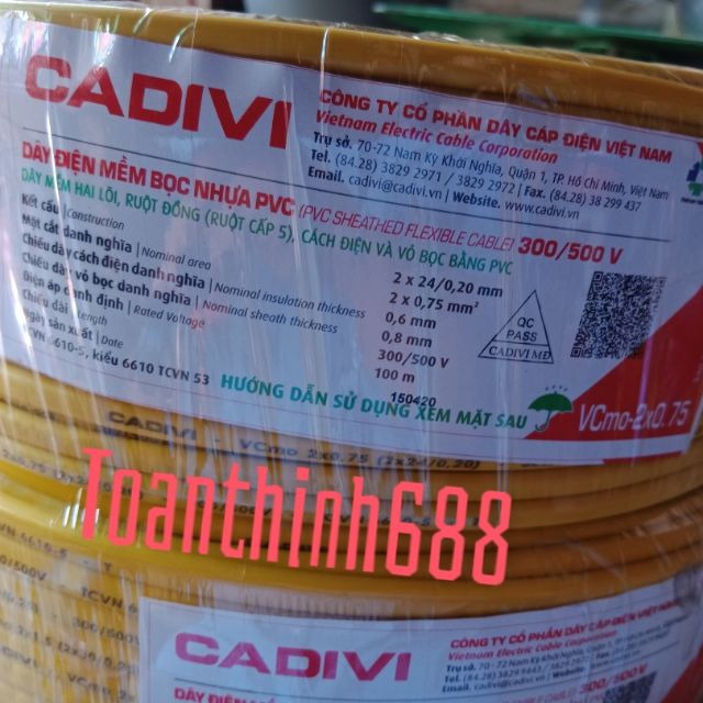 Thiết Bị Điện Gia Dụng > Mạch điện & Phụ tùng > Ổ cắm điện & Dây nối || Dây điện đôi 2x0.75 cadivi 2 lớp vỏ bọc dẹp(100mét)Còn hàng