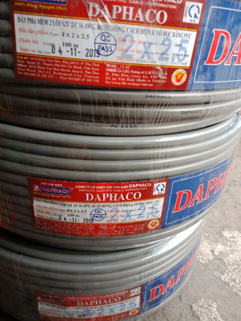 Dây điện đôi 2x2.5 Daphaco-100m dây Fa tròn xám 2 lớp vỏ bọc PVC