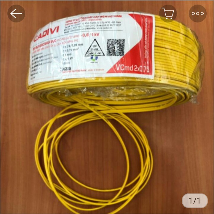 1. DÂY ĐIỆN ĐÔI 2 X 0.75 MM2 CADIVI có thiết diện 2X0.75 mm2, dây dài 100m/cuộn.