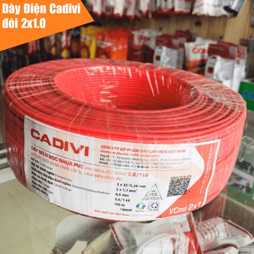 Giới thiệu Dây Điện Đôi Mềm CADIVI - Vcmd 2x1.0mm2 (2x32/0.2mm) Cuộn 100m. 100% đồng