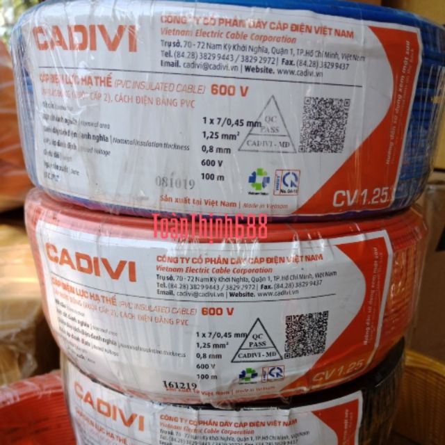 Thiết Bị Điện Gia Dụng > Mạch điện & Phụ tùng > Ổ cắm điện & Dây nối || Dây điện đơn CV1.25 Cadivi 100métCòn hàng