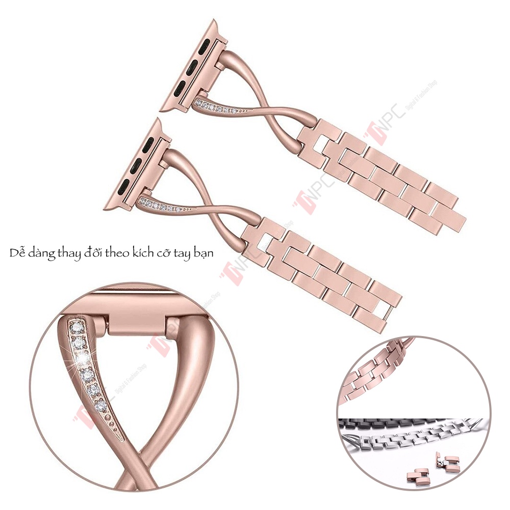 Giới thiệu Dây Đồng Hồ iWatch Kiểu Lắc Tay Đính Đá Series 7 SE 6 5 4 3 2 1 kích cỡ 38mm 40mm 41mm 42mm 44mm 45mm