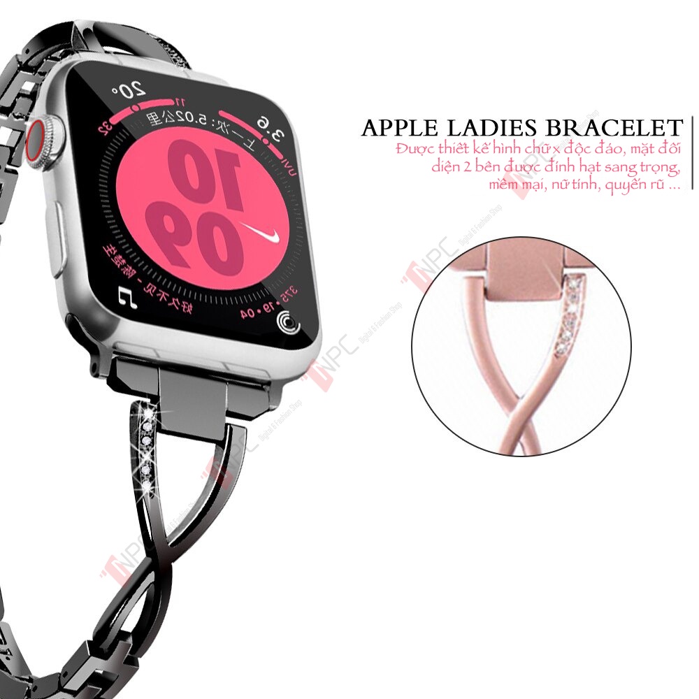 Dây Đồng Hồ iWatch Kiểu Lắc Tay Đính Đá Series 7 SE 6 5 4 3 2 1 kích cỡ 38mm 40mm 41mm 42mm 44mm 45mm