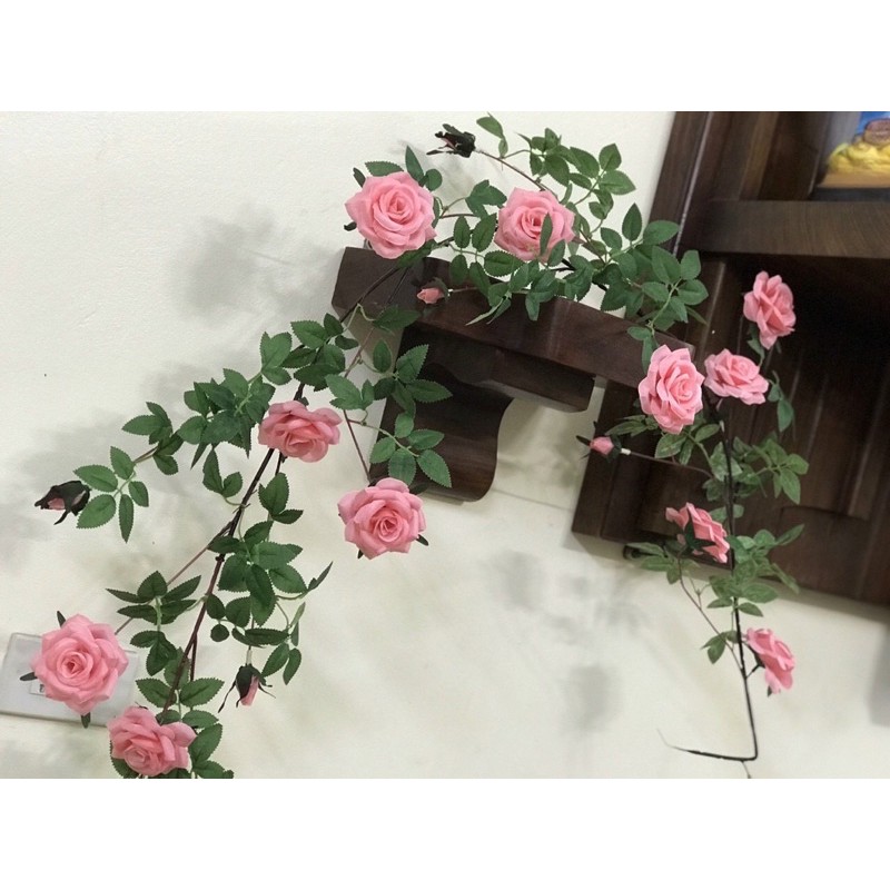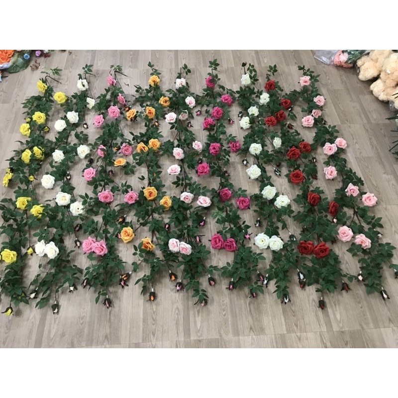 Dây Hoa Hồng Gai Leo bông vừa Cao Cấp- Dây hoa giả cao cấp 1m7