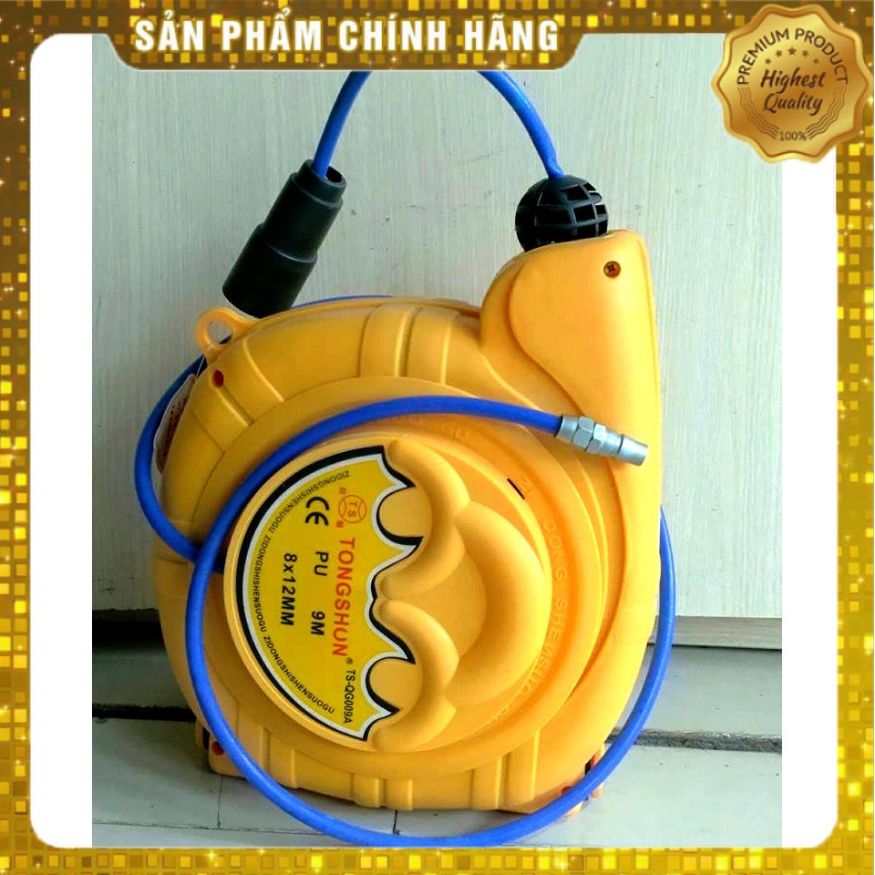 - Dây dài 9M, có 2 đầu nối hơi nhanh.- Kéo dài được 9M, tự rút lại nhanh gọn, k bị vướng bận khi kéo, có chân đứng, nên có thể kéo đi bất cứ đâu, tiện sử dụng.