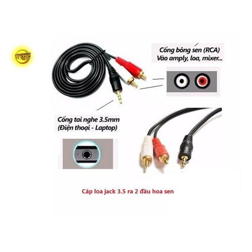 Cáp chuyên dùng để kết nối từ cổng âm thanh loa 3.5mm của máy tính, điện thoại và tất cả thiết bị phát âm thanh bằng cổng 3.5 sang 2 đầu trắng /đỏ RCA, rắc hoa sen của loa, âm ly hoặc 1 số thiết bị chuyên dụng khác