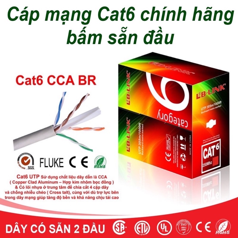 -Chính Hãng Cat6 Sản phẩm đã bấm 2 đầu và chỉ việc sử dụng.