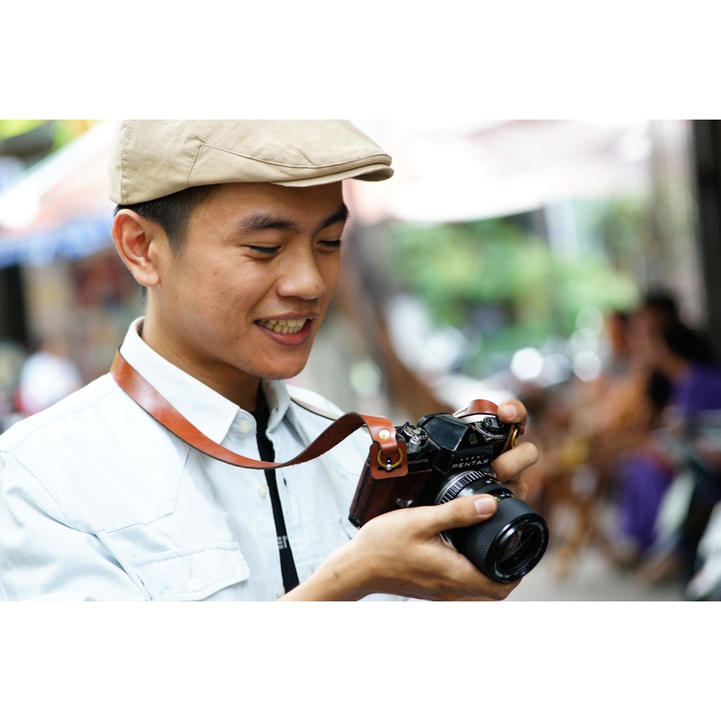 Cameras & Flycam > Phụ kiện máy ảnh > Khác || Dây máy ảnh da bò thật handmade bền chắc cực đẹp da bò nâu đỏ RAM Leather a22Còn hàng