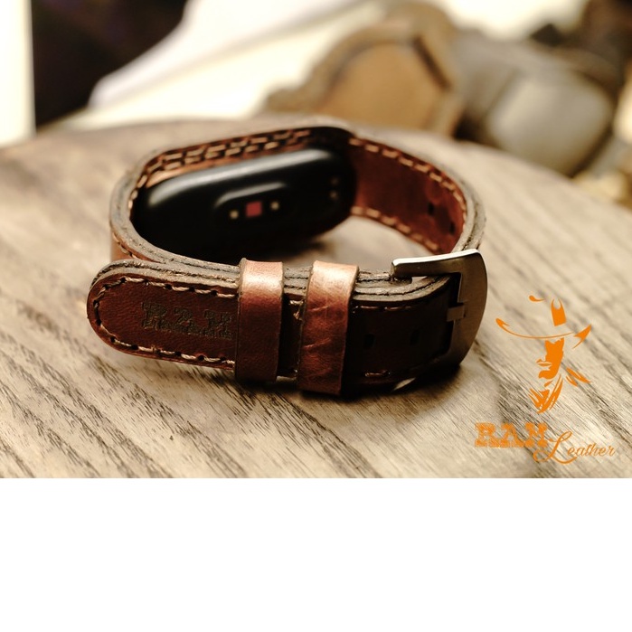Giới thiệu Dây miband da bò thật cao cấp cho miband 3 , miband 4 , miband 5, miband 6 da bò nâu đỏ - RAM Leather
