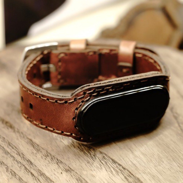 Thiết kế chắc chắn giữ miband luôn cố định và an tâm với đường chỉ bao quanh miband và chất liệu da bò cực bền