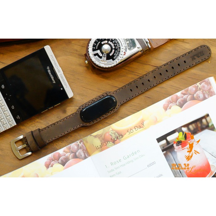 Dây miband RAM Leather da bò nâu đất cao cấp cho miband 3 , miband 4 , miband 5, miband 6