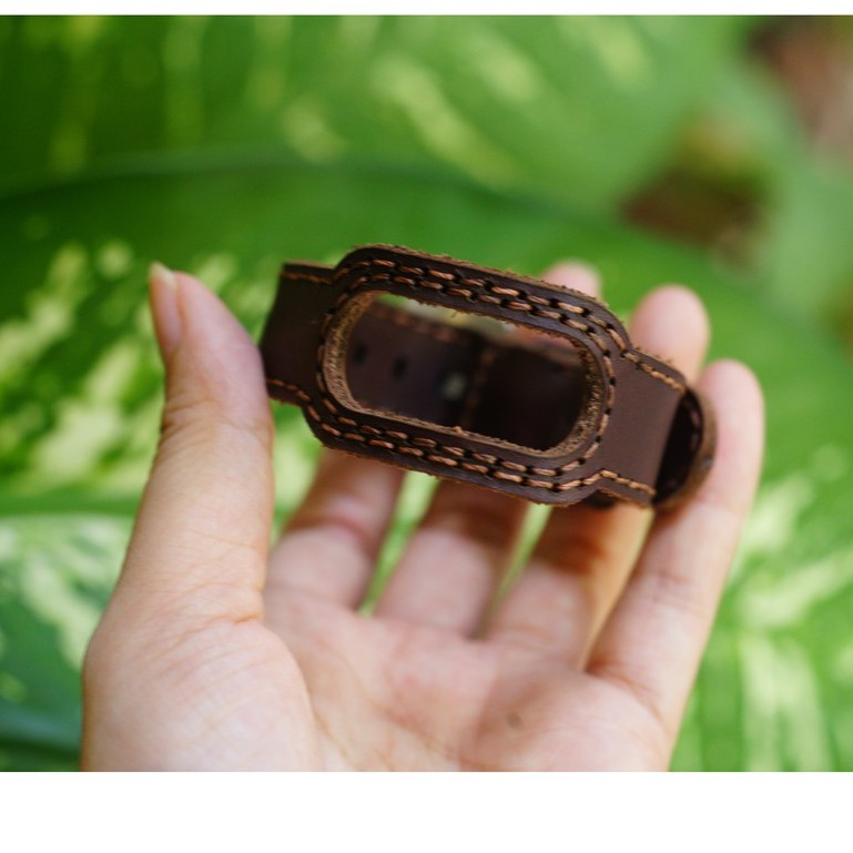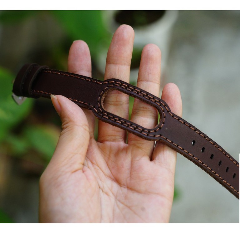 Thiết kế chắc chắn giữ miband luôn cố định và an tâm với đường chỉ bao quanh miband và chất liệu da bò cực bền