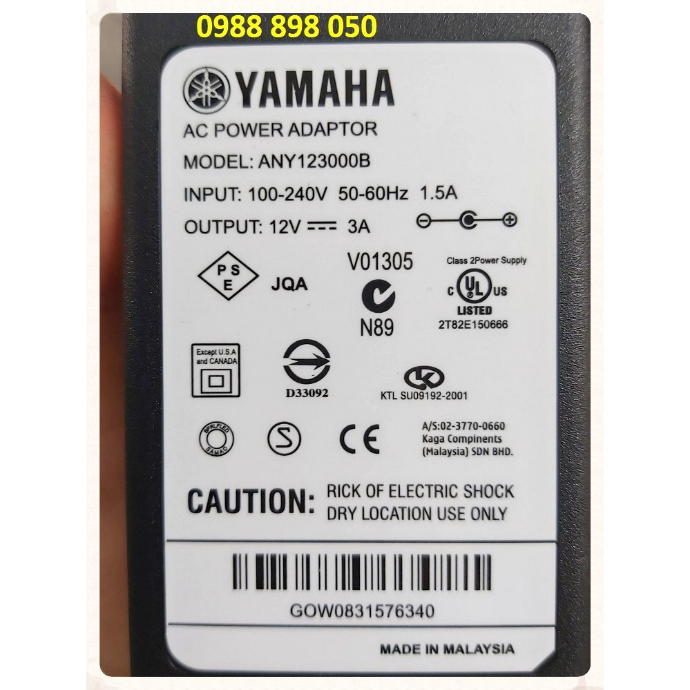 Công suất đầu ra: DC 12V 3A dùng cho tất cả đàn yamaha sử dụng điện 12V Tương thích và thay thế các Dòng adapter thấp hơn như 12V 3A, 12V 2A, 12V 1.5a, 12V 1A…